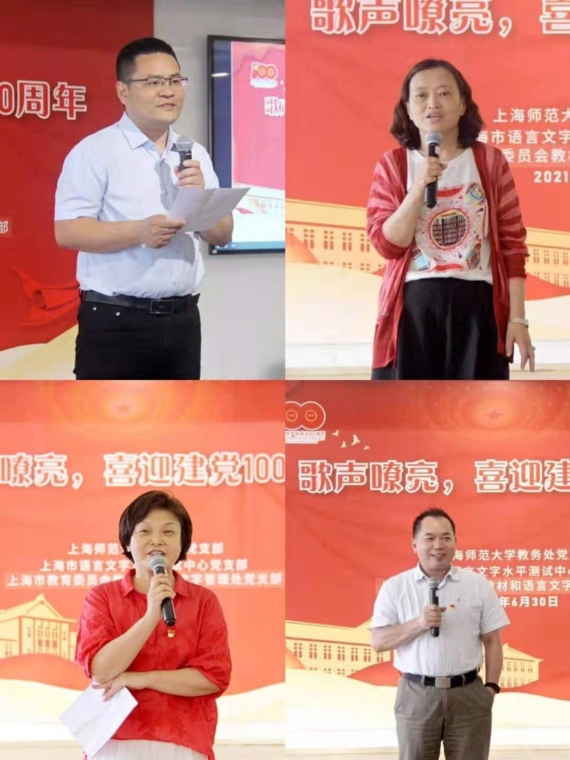 在全国人民喜迎建党100周年之际,6月30日下午上海师范大学教务处党支部与上海市教委教材和语言文字管理处党支部、上海市语言文字水平测试中心党支部在香樟园工会多功能厅举办了“歌声嘹亮 喜迎建党100周年”联合主题党日活动。