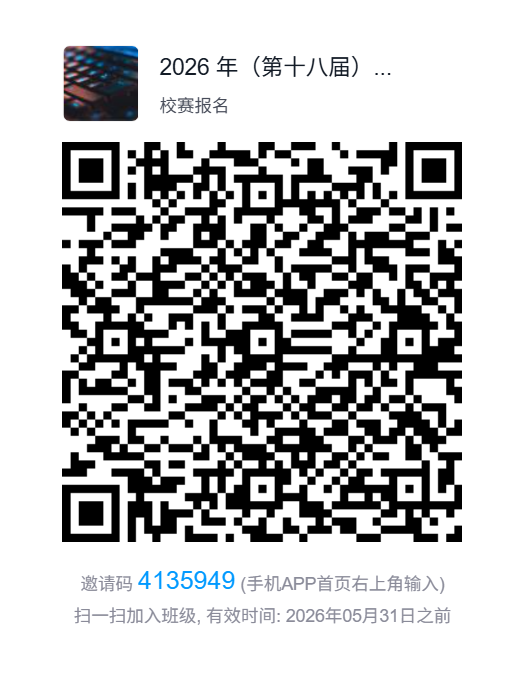 请学习通扫描二维码加入校赛课程查看校赛报名链接、市赛通知、评分标准和实施细则。